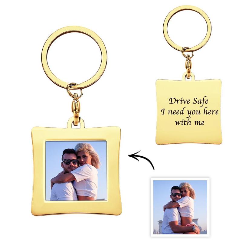 Magnifique porte-clés photo personnalisé en métal qui capture des moments spéciaux de votre vie. Personnalisez ce porte-clés avec un message, une signature ou tout ce que vous aimez comme cadeau pour vos proches, ce qui donne à nos pièces une signification unique, spécifique et spéciale pour vous. Personnalisé avec amour, c'est sûr d'être un charme spécial qu'ils chériront pour de nombreux moments à venir.