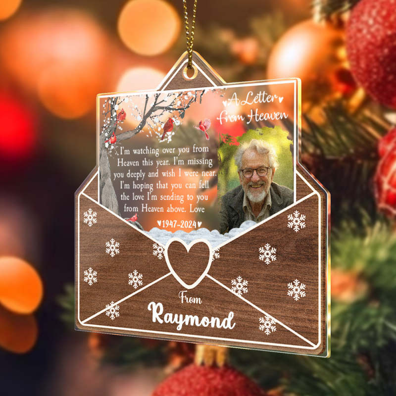 Cet ornement personnalisé constitue un hommage significatif aux êtres chers perdus pendant la période des fêtes. Fabriqué avec soin, il comporte un message sincère du ciel et peut être personnalisé avec un nom et une année. Partagez la chaleur de leur souvenir à chaque Noël avec ce cadeau spécial et unique en son genre.