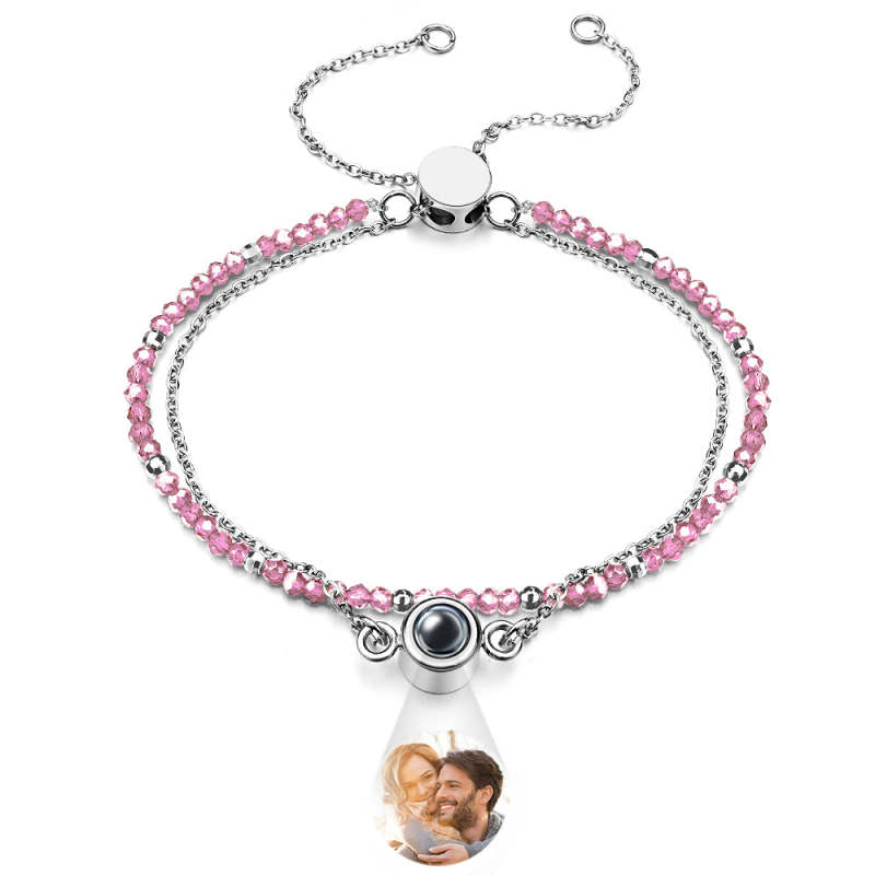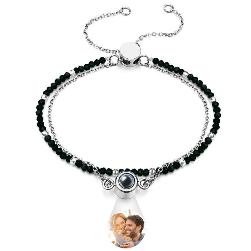 Découvrez la magie de notre bracelet double couche personnalisé en cristal à projection de photos. Touchez simplement pour transformer votre photo préférée en une projection holographique. Ce mélange unique de mode et d'émotion vous permet de porter vos précieux souvenirs comme un accessoire élégant et sentimental. Avec une coupe réglable, gardez vos proches à proximité où que vous alliez.