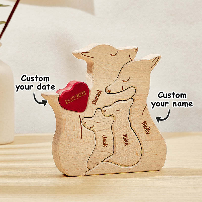 Célébrez le lien unique et les précieux souvenirs de votre famille avec notre puzzle d'art en bois personnalisé en forme de renard. Ce cadeau attentionné vous permet d'afficher les noms de chaque membre de la famille, créant ainsi un souvenir spécial et significatif qui célèbre le voyage de votre famille.