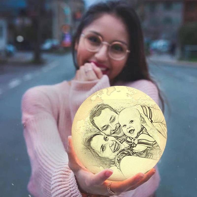 Magique Impression 3d Lumière De Lune En Photo Gravée, Lampe Terre - Télécommande Seize Couleurs (10-20cm)