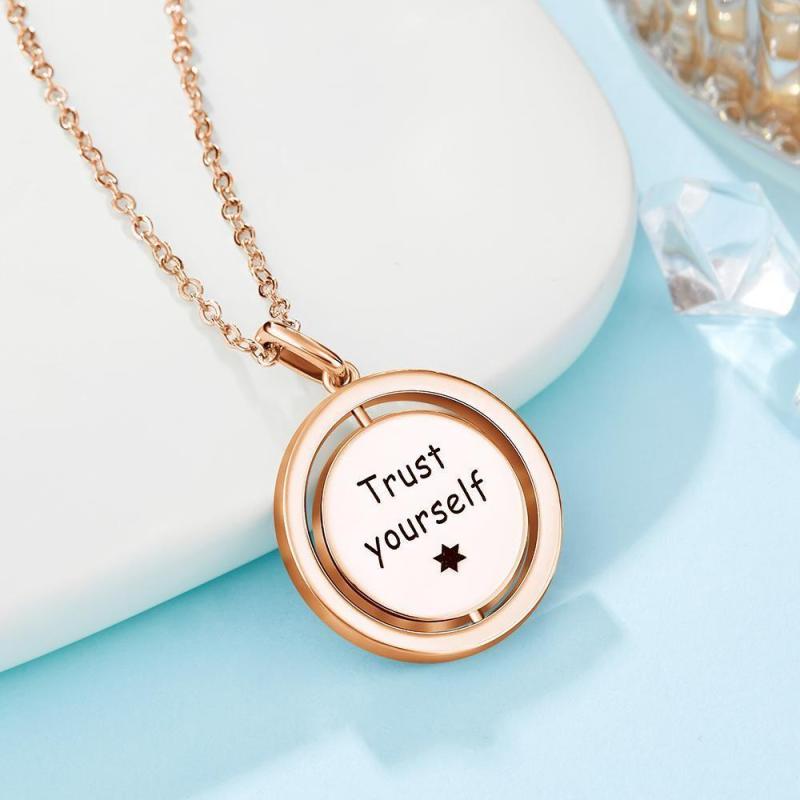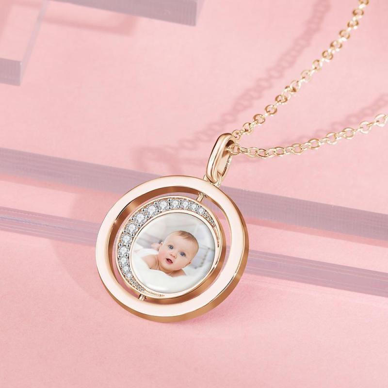Collier Photo Gravé Blessing Coin Collier Cadeau Pour Elle Plaqué Or Rose