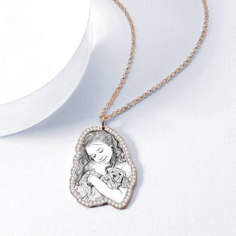 Le pendentif photo avec étiquette en acier inoxydable Soufeel personnalisé est le moyen idéal de garder vos meilleurs souvenirs près de votre ame. Ce collier photo personnalisé est fait d’acier inoxydable robuste qui ne se ternira jamais. Vous pourrez donc le garder près de vous pendant de nombreuses années. Le cadeau parfait, réfléchi, amusant et unique pour toutes les occasions! Soufeel propose une multitude de bijoux personnalisés à des prix raisonnables et qui constituent d'excellents cadeaux pour toutes sortes d'occasions, comme les anniversaires, les vacances ou les anniversaires. Le cadeau réfléchi, amusant et unique parfait pour tout amateur d'animaux de compagnie en toute occasion! Vacances, anniversaires, mariages ou anniversaires - nommez-les, ils l'adoreront! Nos artistes découperont, recadreront et placeront votre photo sur un magnifique collier intemporel. Collier avec Gravure en Photo, Collier Cadeau Commémoratif en Cristal avec Strass Plaqué Or Rose - Croquis