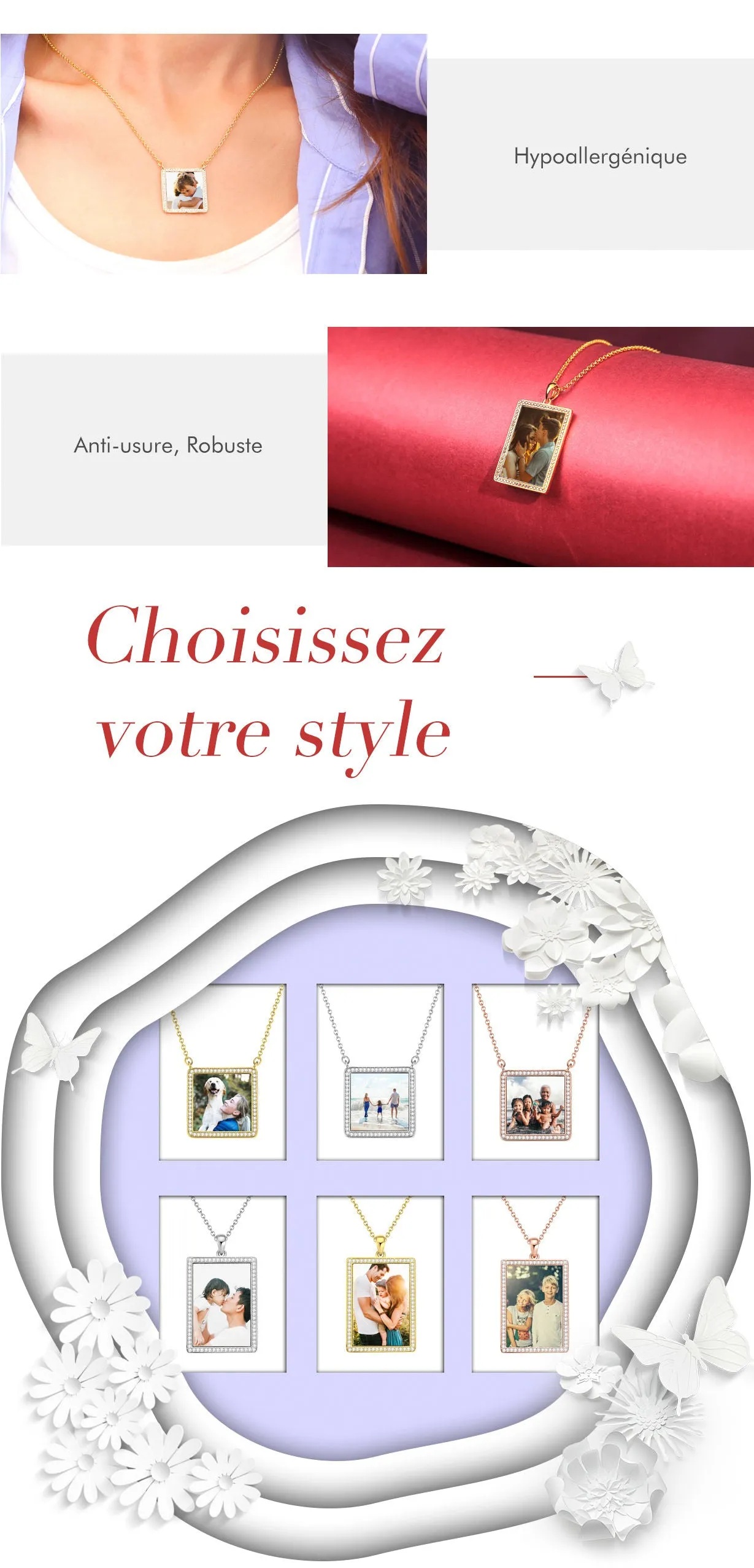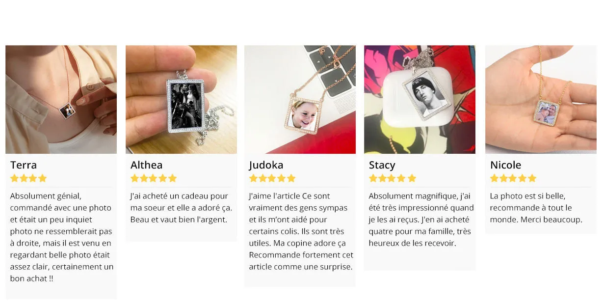 Le pendentif photo avec étiquette en acier inoxydable Soufeel personnalisé est le moyen idéal de garder vos meilleurs souvenirs près de votre ame. Ce collier photo personnalisé est fait d’acier inoxydable robuste qui ne se ternira jamais. Vous pourrez donc le garder près de vous pendant de nombreuses années. Le cadeau parfait, réfléchi, amusant et unique pour toutes les occasions! Soufeel propose une multitude de bijoux personnalisés à des prix raisonnables et qui constituent d'excellents cadeaux pour toutes sortes d'occasions, comme les anniversaires, les vacances ou les anniversaires. Le cadeau réfléchi, amusant et unique parfait pour tout amateur d'animaux de compagnie en toute occasion! Vacances, anniversaires, mariages ou anniversaires - nommez-les, ils l'adoreront! Nos artistes découperont, recadreront et placeront votre photo sur un magnifique collier intemporel.Collier avec Gravure en Photo, Joli Collier avec Cristal Strass et Argent Platine Plaqué Or 14K - Coloré