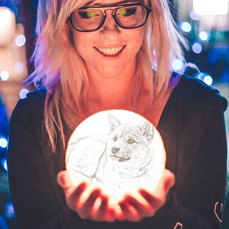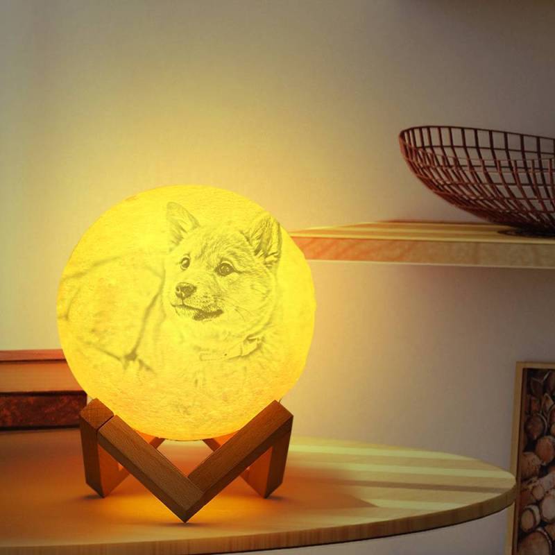Lampe Photo Lune, Lampe Photo 3d Personnalisée, Lampe Chien Mignon Lune - Toucher Deux Couleurs 15cm-20cm Disponible