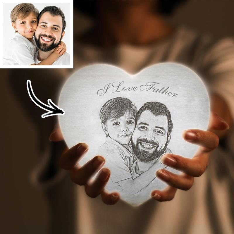 Lampe Photo Lune Lampe Photo 3d Personnalisée Lune Forme De Coeur Pour Père - Touchez Trois Couleurs 4,72 Pouces 5,9 Pouces Disponibles