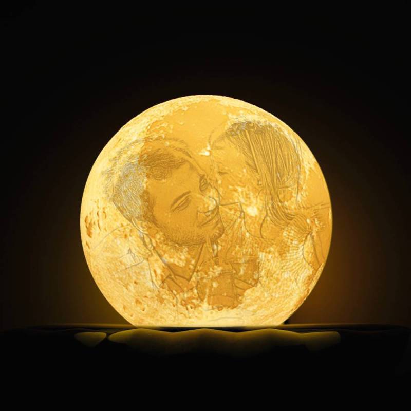 Lampe De Lune , Lampe En Photo 3d Personnalisée, Lampe Lune Avec Petit Coeur - Toucher Deux Couleurs 15cm-20cm Disponible