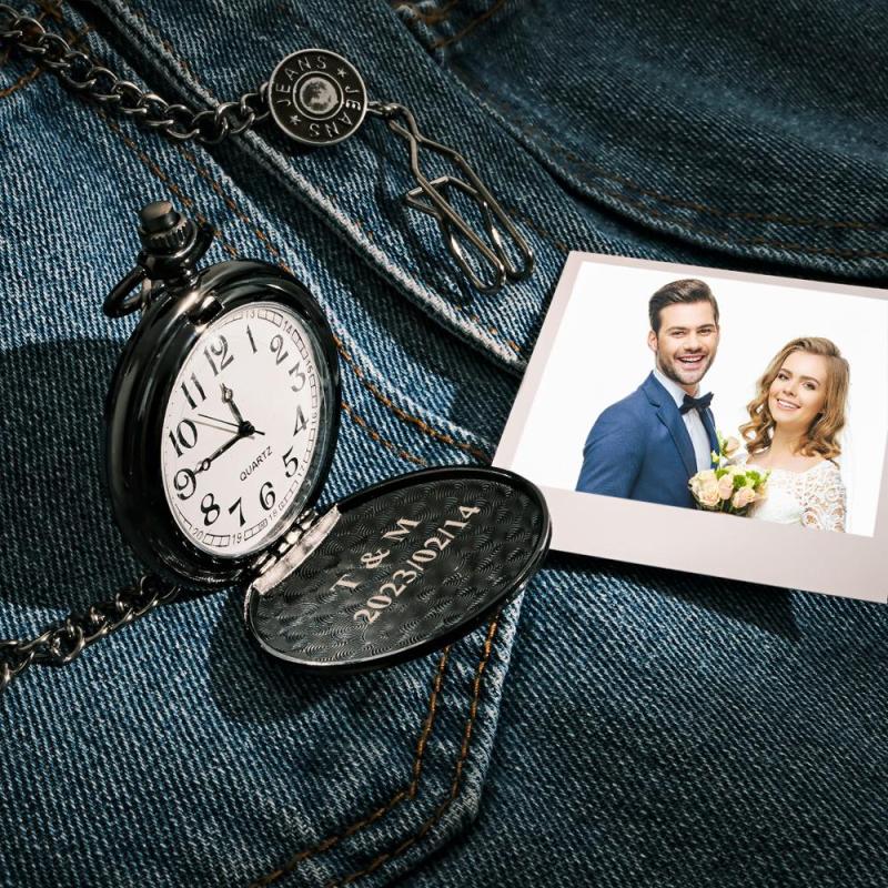 Montre De Poche Photo Gravée Calendrier Personnalisé Anniversaire Cadeau Personnalisé Pour Couple