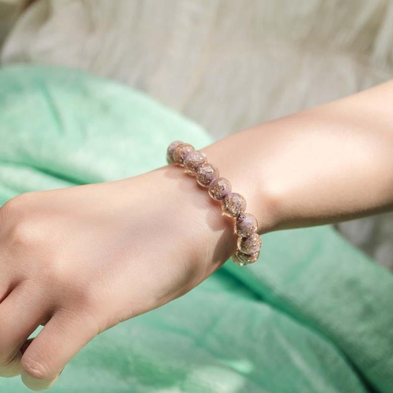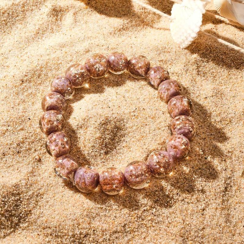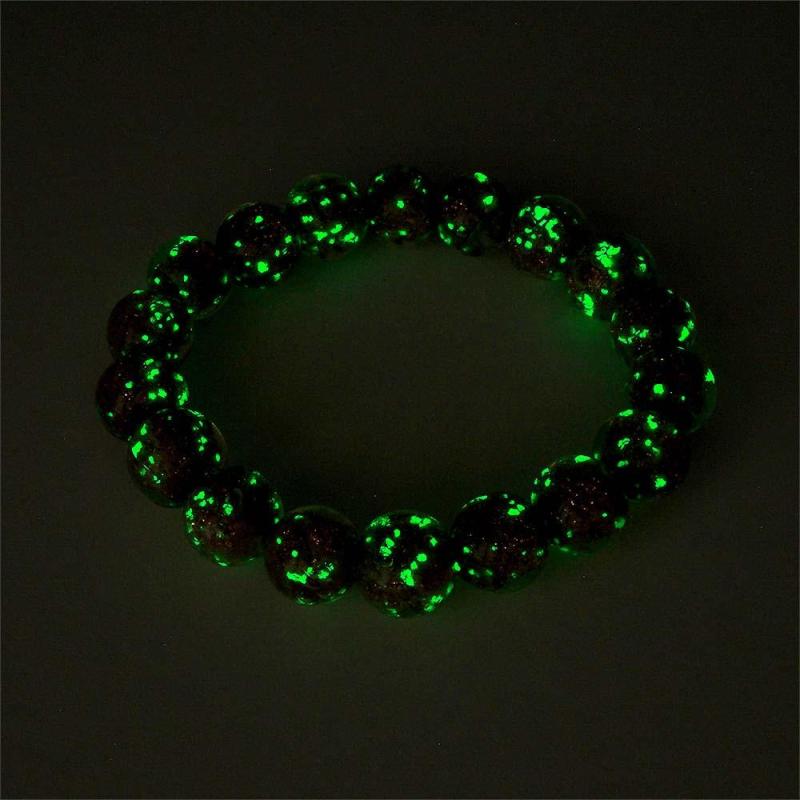 Bracelet De Perles Extensibles En Verre Luciole Violet, Brillant Dans Le Noir, Bracelet Lumineux