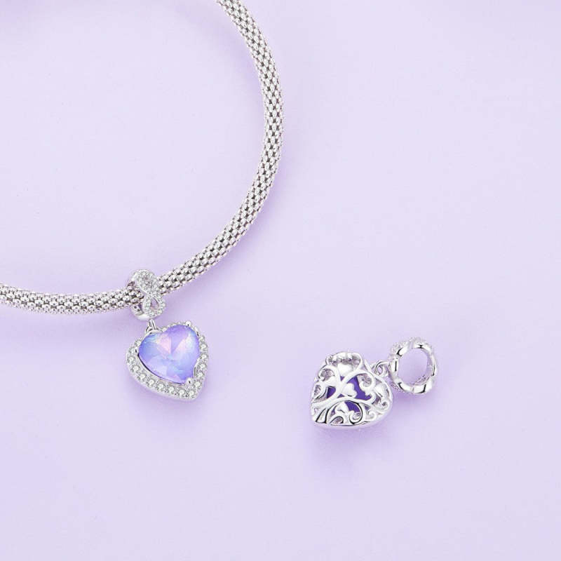 Charm Pendentif Amour Infini Cœur Violet Argent