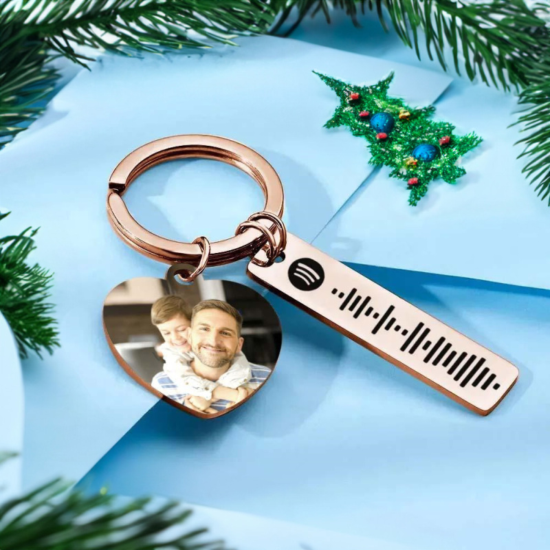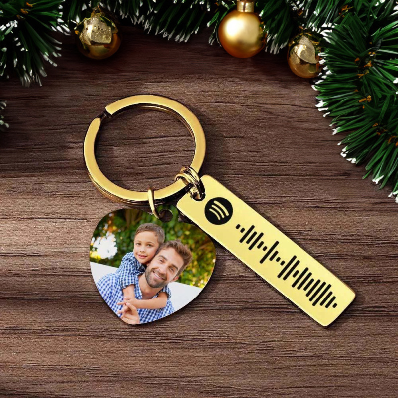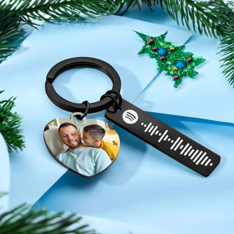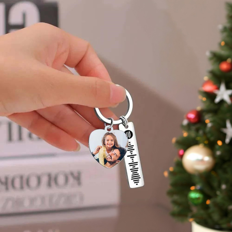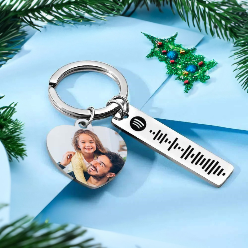 Porte-clés Spotify Personnalisé, Image Et Musique, Code De Chanson, Cœur, Photo De Couple, Cadeaux De Noël