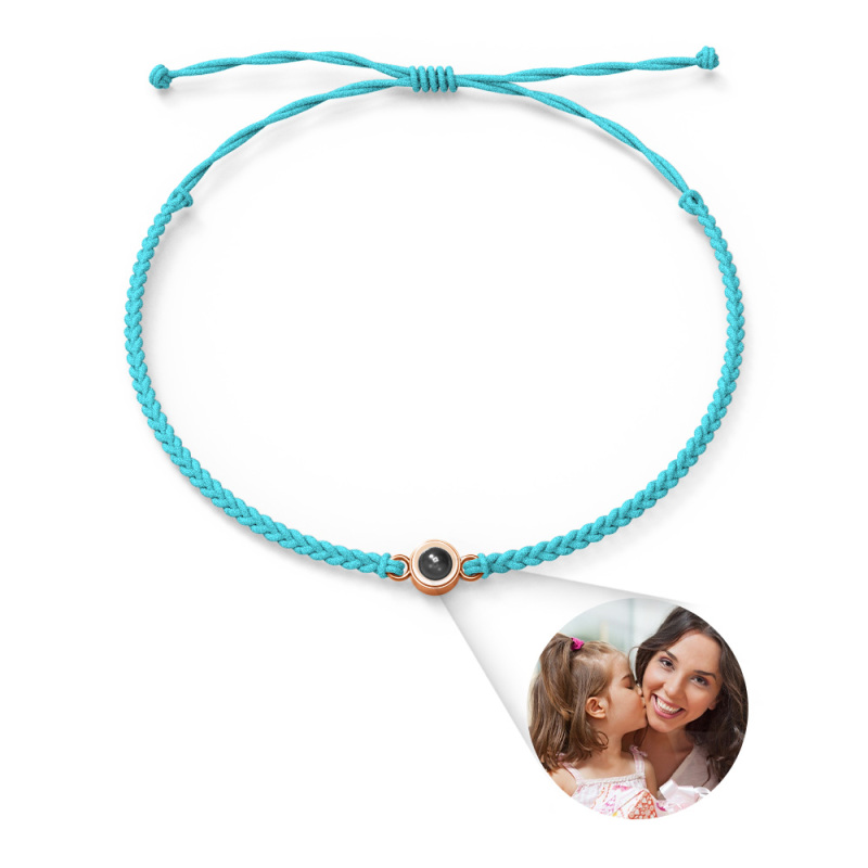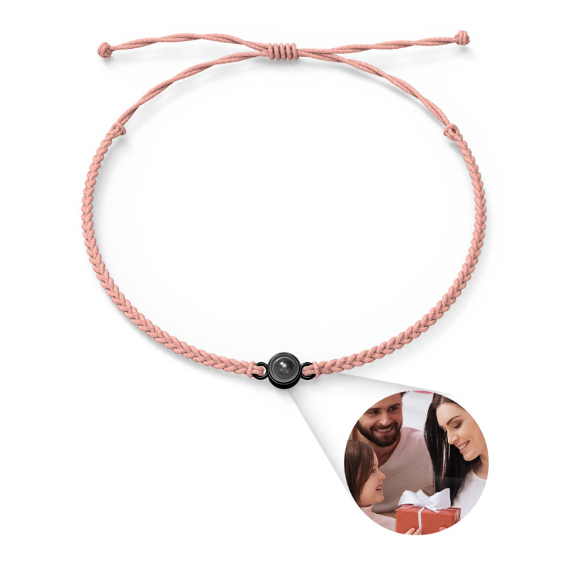 Bracelet Couple Projection Photo Personnalisé Bracelet Corde Noire Tressée Cadeau Pour La Fête Des Mères