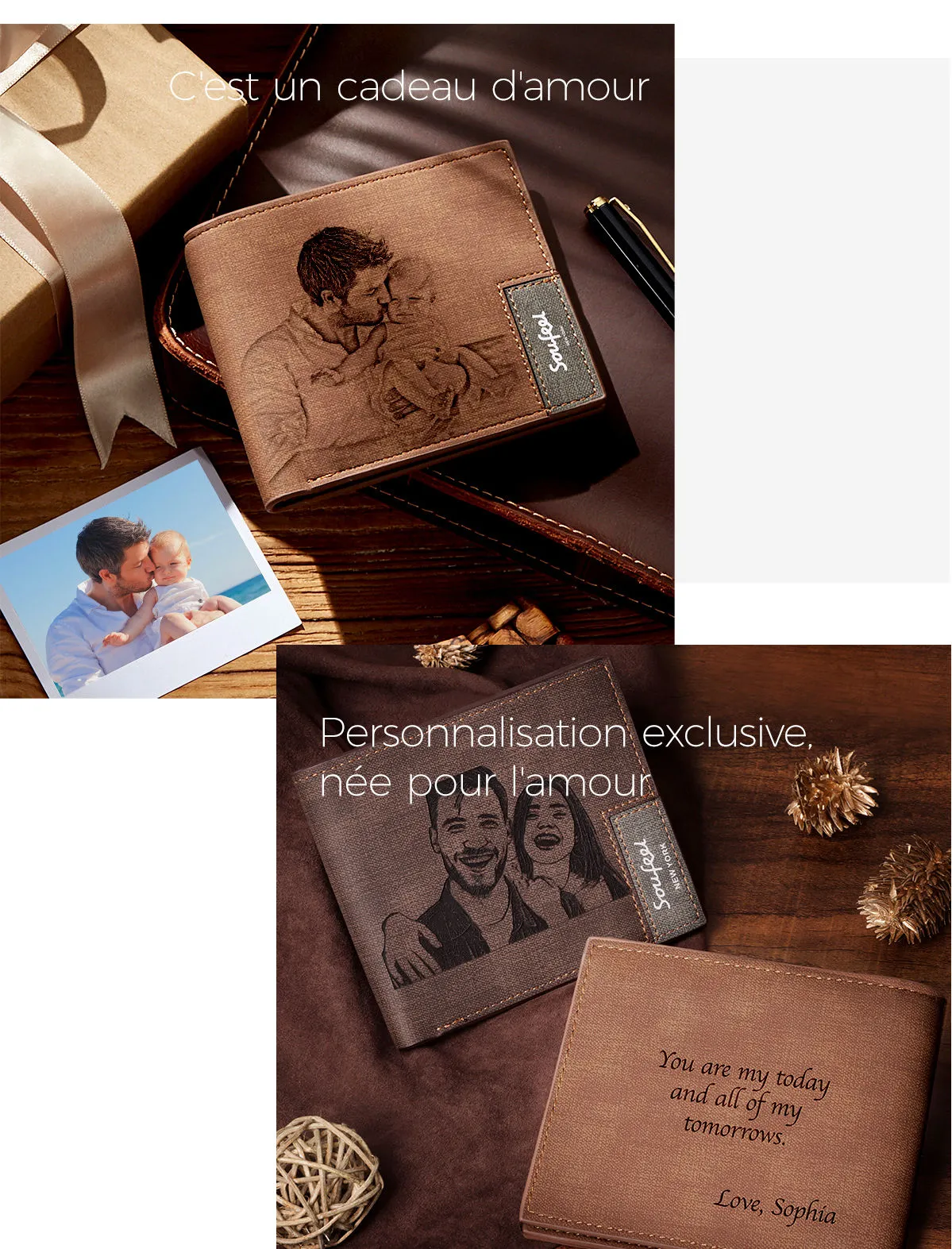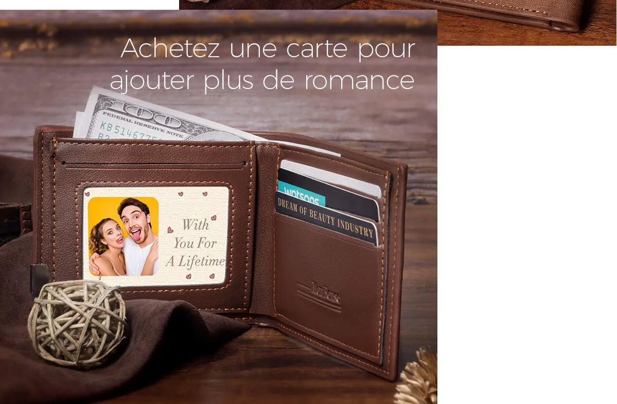 Ce portefeuille est une excellente idée cadeau pour la fête des pères. Notre portefeuille photo capturera un moment qui est parti pour toujours. La photo ne tombera jamais ! Ce portefeuille photo est conçu pour vous fournir un moyen rapide et facile de créer un souvenir unique et utile. Le tissu avancé et le design classique rendent le portefeuille encore plus élégant. Le design est très traditionnel, la taille est parfaite, les détails sont très beaux, a vraiment l'apparence d'un portefeuille haut de gamme.