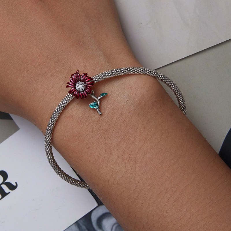 Breloque Marguerite Rouge En Argent, Cadeaux Pour La Fête Des Mères