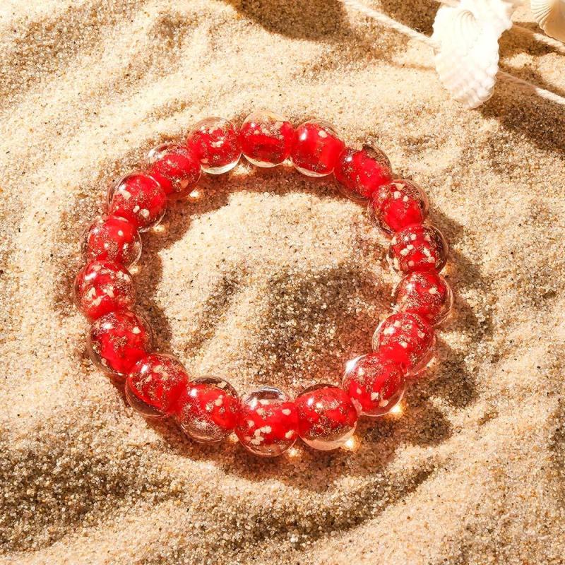 Bracelet De Perles Extensibles En Verre Luciole Rouge Qui Brille Dans Le Noir Bracelet Lumineux
