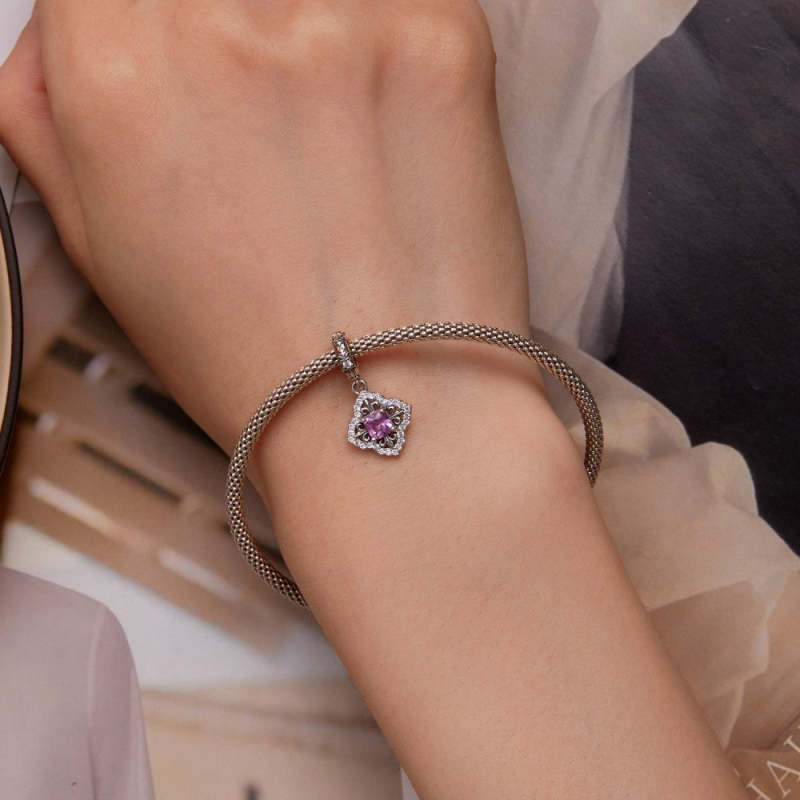 Breloque Motif Rétro Avec Pendentif En Zircon Rose Argenté