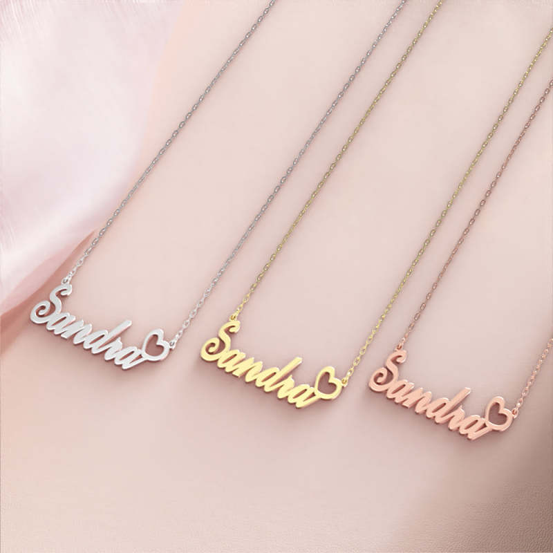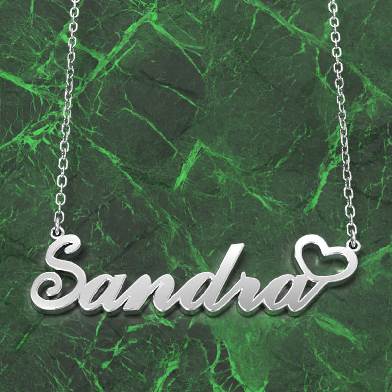 Sandra Nom Collier Argent anti-oxydation Collier Personnalisé Avec Coeur, Cadeaux Personnalisés Pour Elle