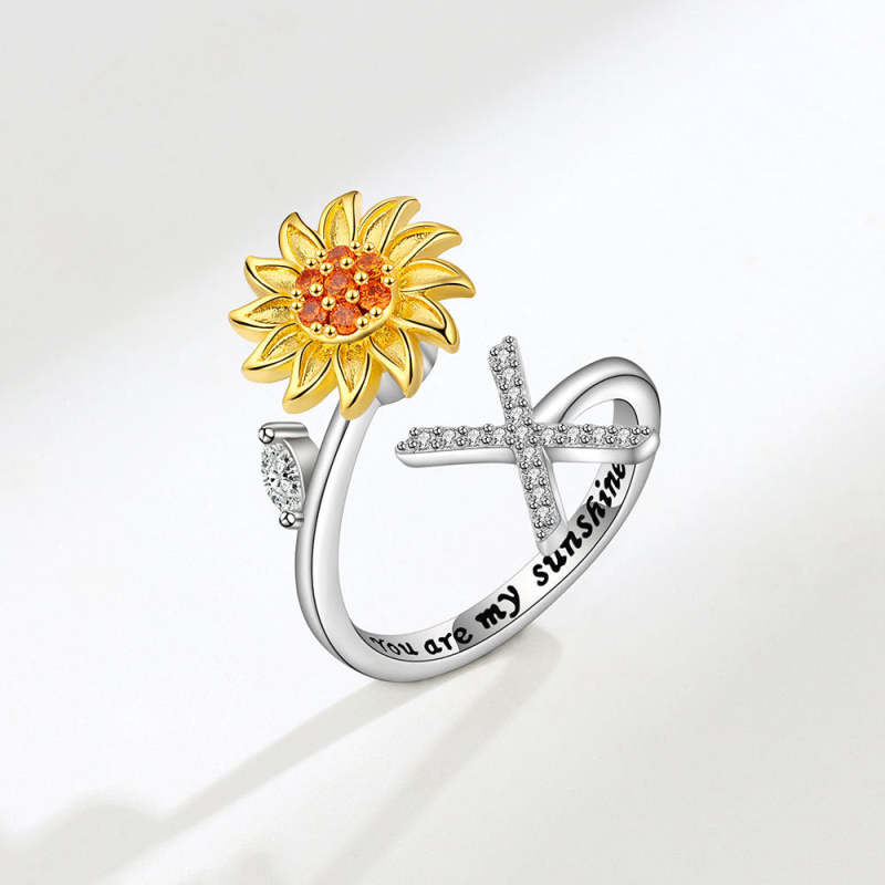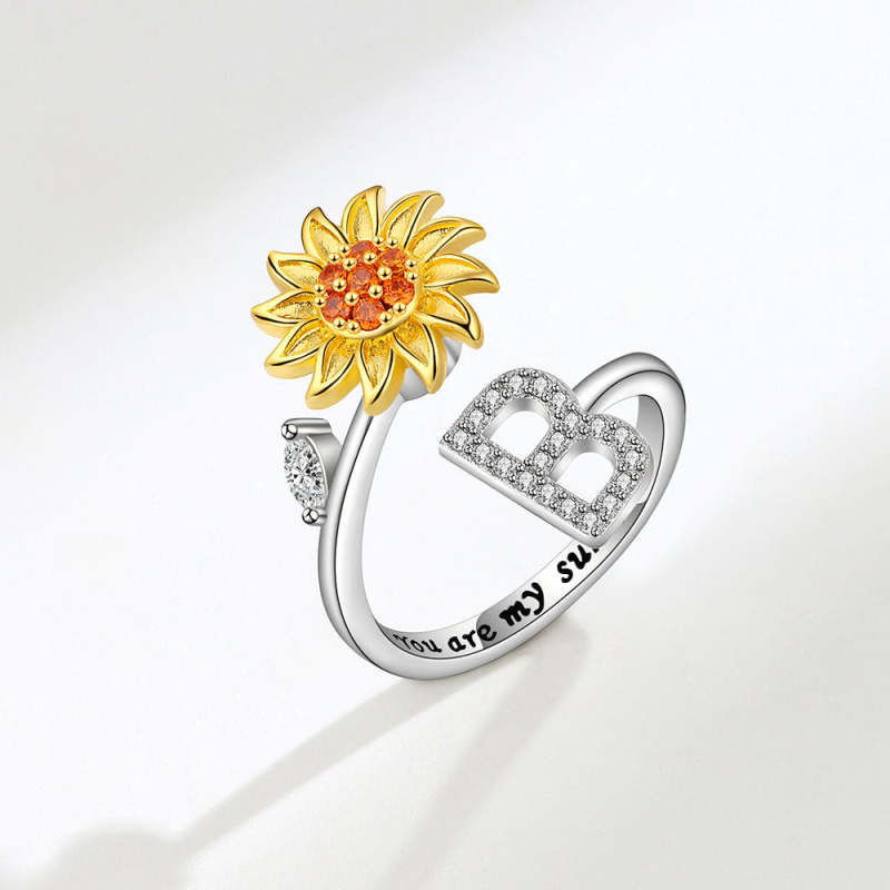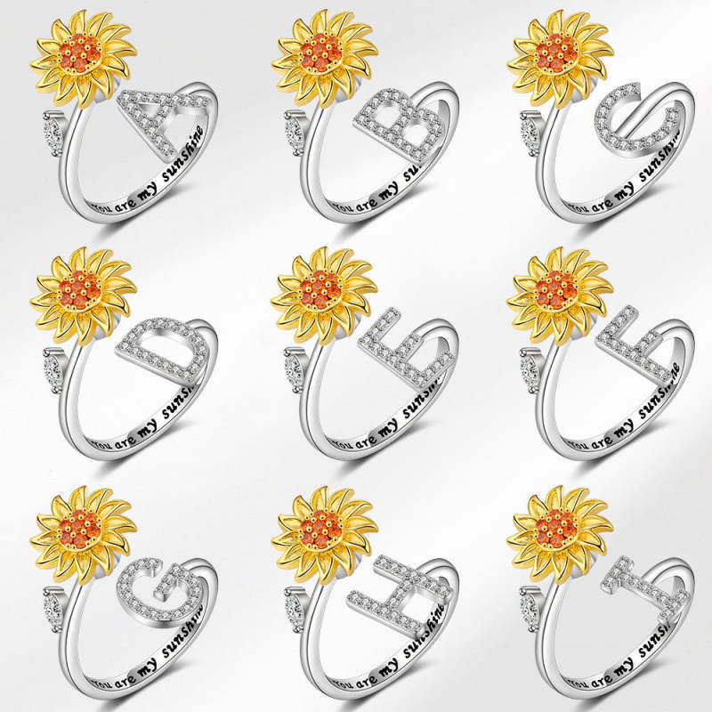 Les tournesols symbolisent la chaleur, la loyauté, l'amour et la foi, représentent le courage de rechercher le bonheur. Nous avons combiné l'initiale personnalisée avec la bague tournesol, la bague tournesol gravée tu es mon soleil dans la bague intérieure. ce qui serait un cadeau parfait et spécial pour vos proches, apporterait de la joie et de la beauté dans sa vie.