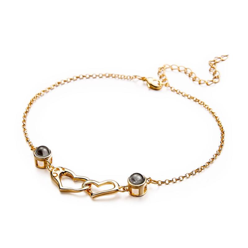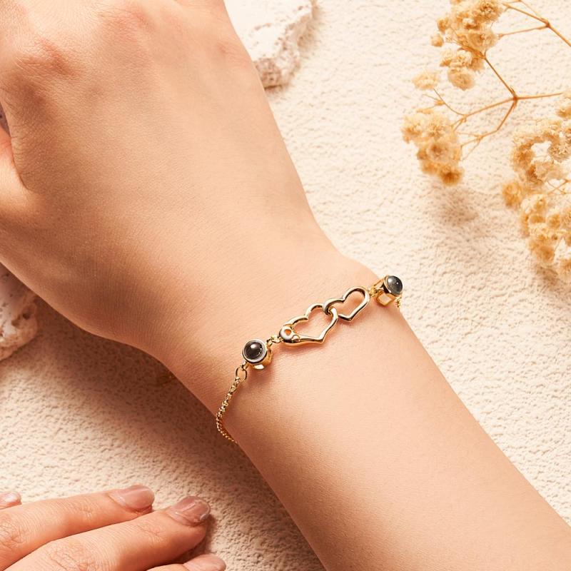 Bracelet De Projection De Deux Cœurs, Image Personnalisée À L'intérieur, Bijoux Souvenir, Tendance, Cadeau Pour Meilleur Ami